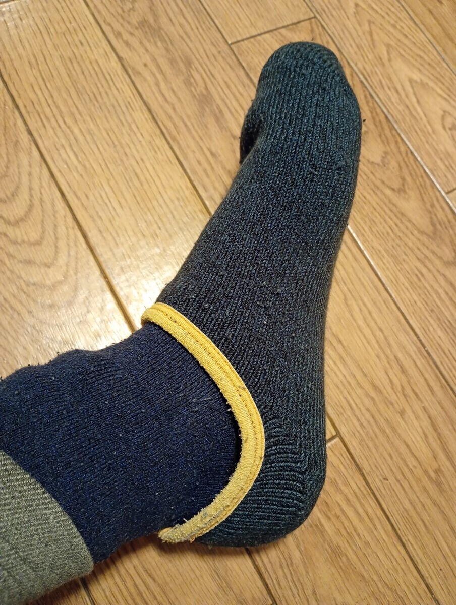 靴下の上から履く靴下だからオーバーソックスだと思っていた。これが丁度いい感じだったのだ。更にスリッパを履くこともできるのがよい。外出するときは外側だけ脱いで靴を履くという感じだった。